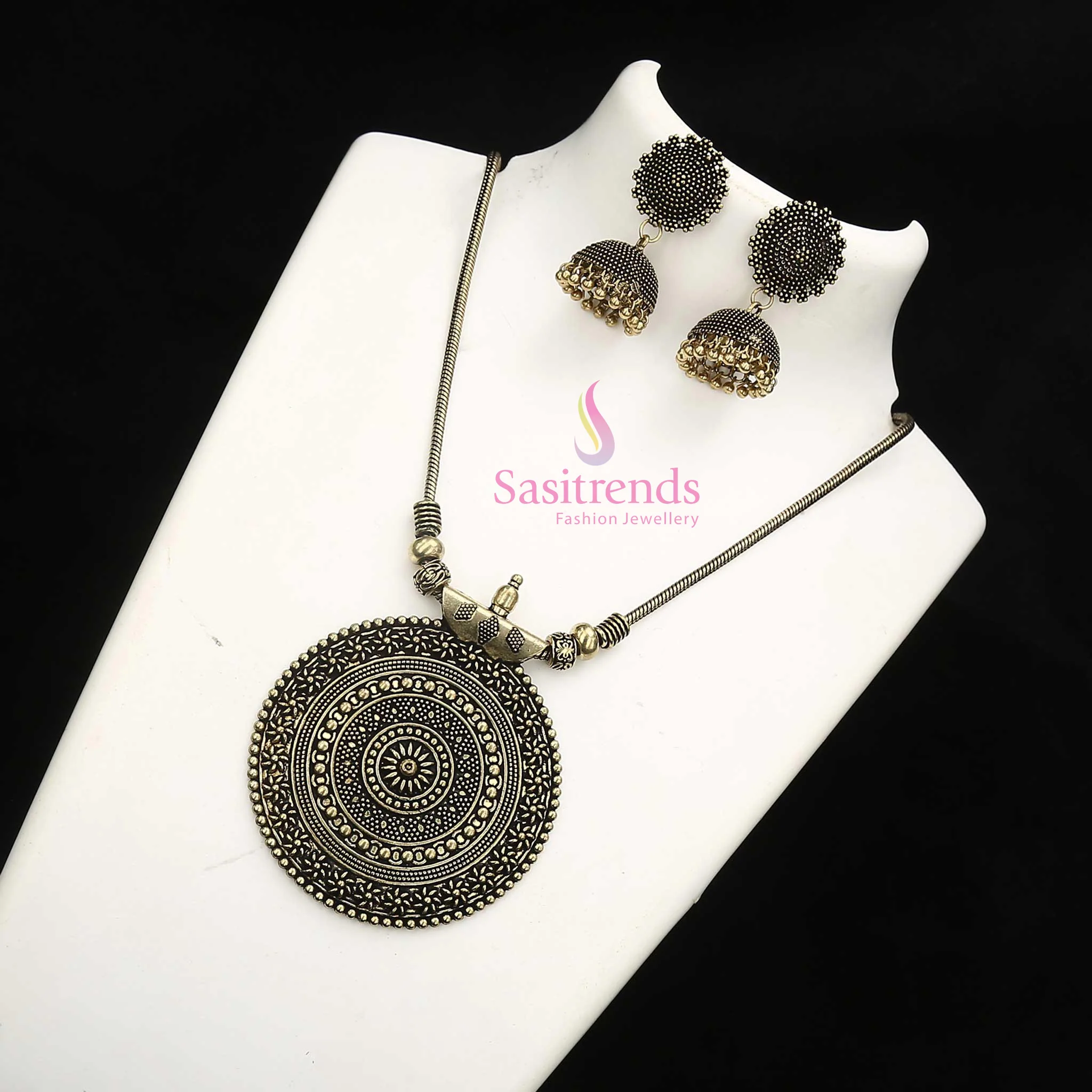 Nayanthara Chakra Pendant Chain Oxidised Jewellery Set with Jhumka Earrings - Sasitrends