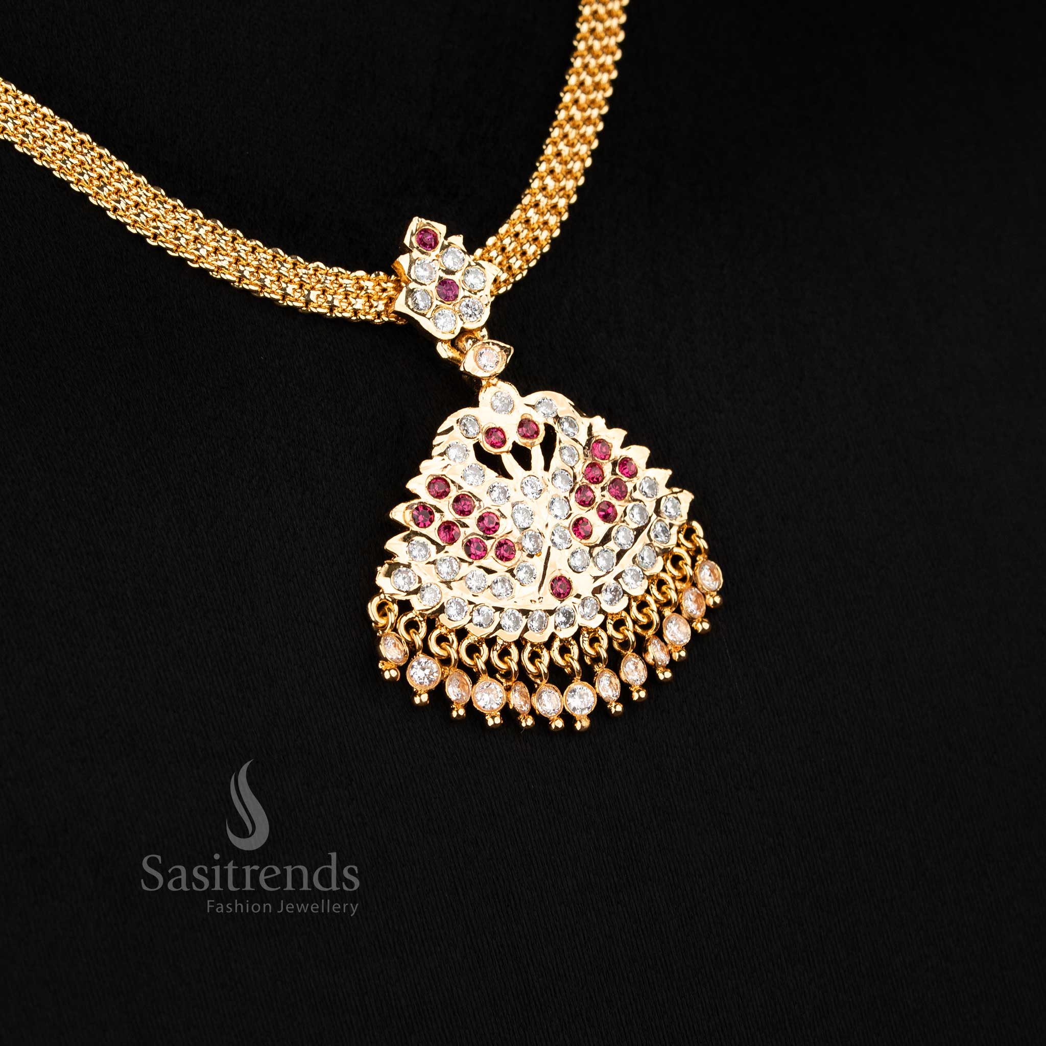Trendy Indian Attire Look: Micro Gold Plated Peacock Designer Addigai American Diamond Pendant Necklace